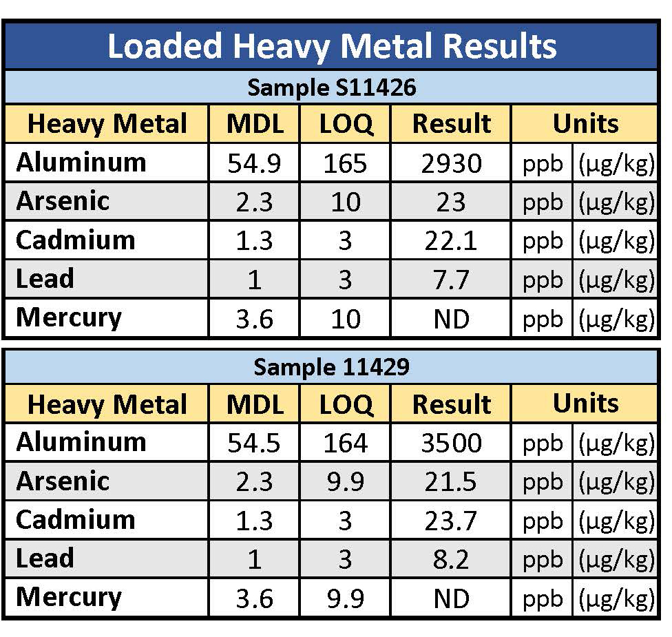 - Levels of toxic heavy metals arsenic and cadmium present in two samples of Loaded Trix flavor were 200-400% higher than EPA allowable levels in drinking water.