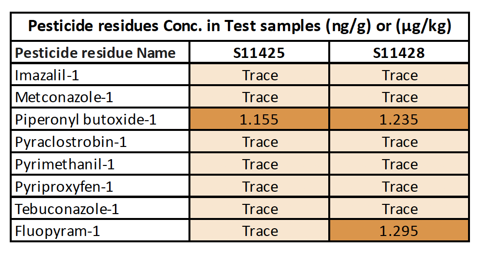 - Trace levels or higher of 8 pesticides were detected, including Fluopyram-1 a fungicide that has been shown to cause endocrine disruption in humans and wildlife at low levels.