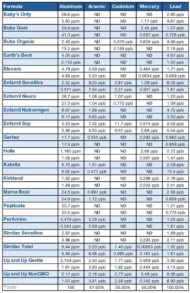 Baby Formula Toxic Metals Results
