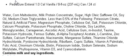*** "I have reviewed the lab report dated January 2, 2015 from Microbe Inotech Lab for Moms Across America and can tell you that your results for Pediasure Enteral Nutritional drink are consistent with our lab results of April 18, 2004 for soy based Enfamil ProSobee liquid infant baby formulas. *