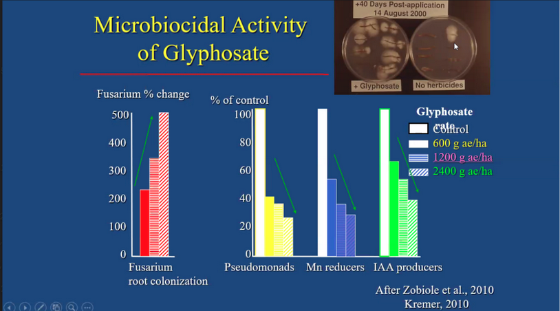 According to Michael McNeil of Ag Advisory and Triada World, even low levels of glyphosate use increase the presence of *Fusarium*, an opportunistic human fungal pathogen. The byproducts of this mold are harmful mycotoxins, which can cause chronic illness, birth defects, gastrointestinal distress, immune disorders, neurotoxicity, kidney damage, cancer, stunted growth in humans, and death.