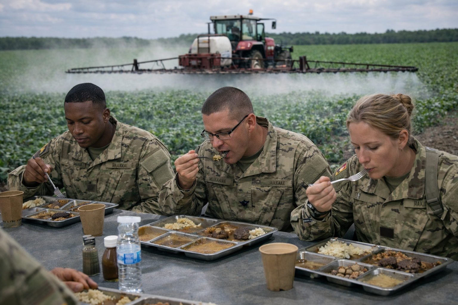 The evidence is clear: America’s service members are being fed food that undermines rather than strengthens their health. The routine presence of toxic pesticides, banned veterinary drugs growth growth-promoting drugs widely used in US beef production, heavy metals, and glyphosate, combined with nutritionally depleted, chemically fortified meals, creates an unnecessary and dangerous burden on the bodies and minds of those we rely on for national defense. Food directly affects endurance, emotional stability, and overall health. Protecting our troops means protecting their food supply. The troops' food supply is derived from industrial chemical farming.